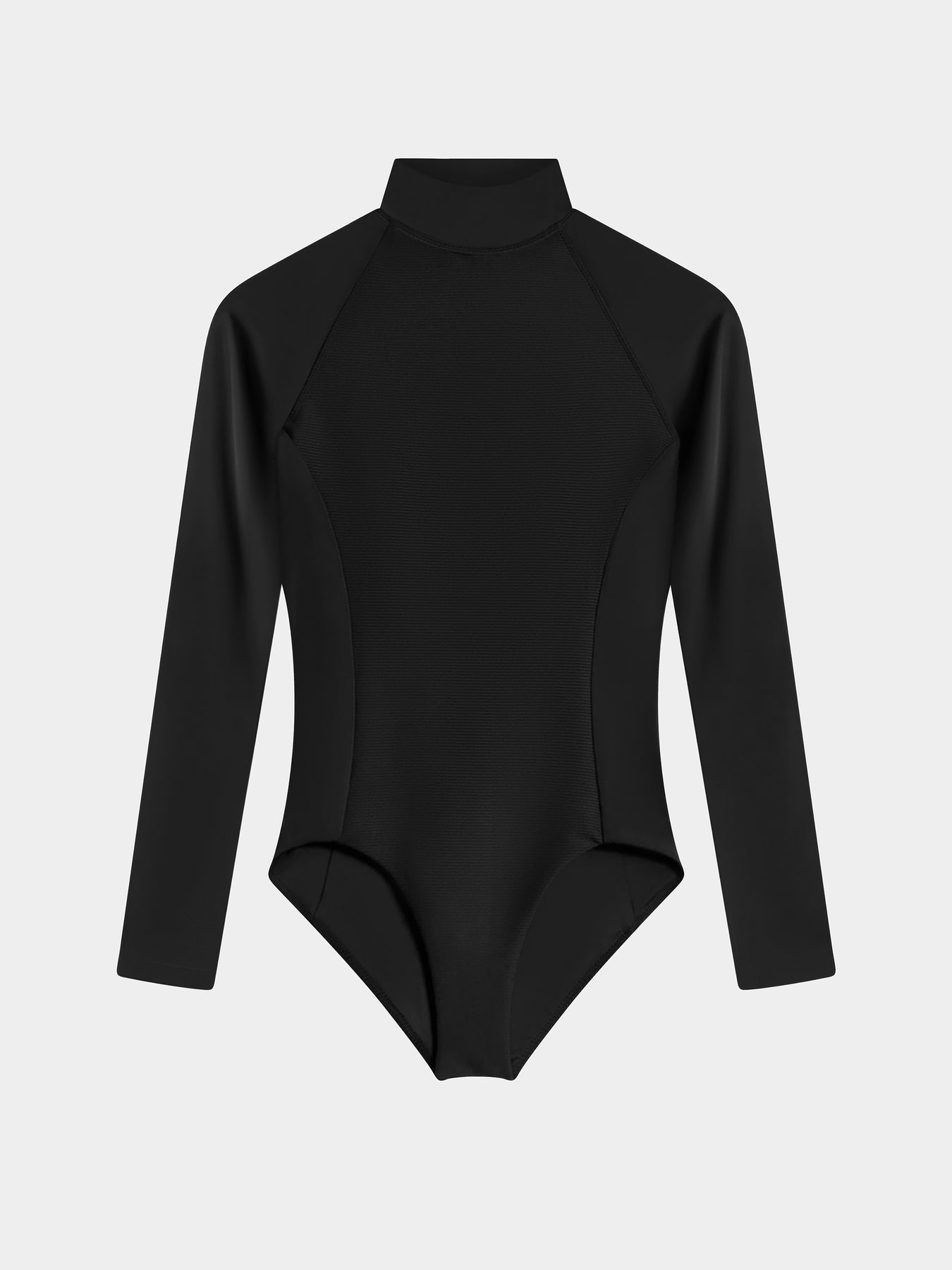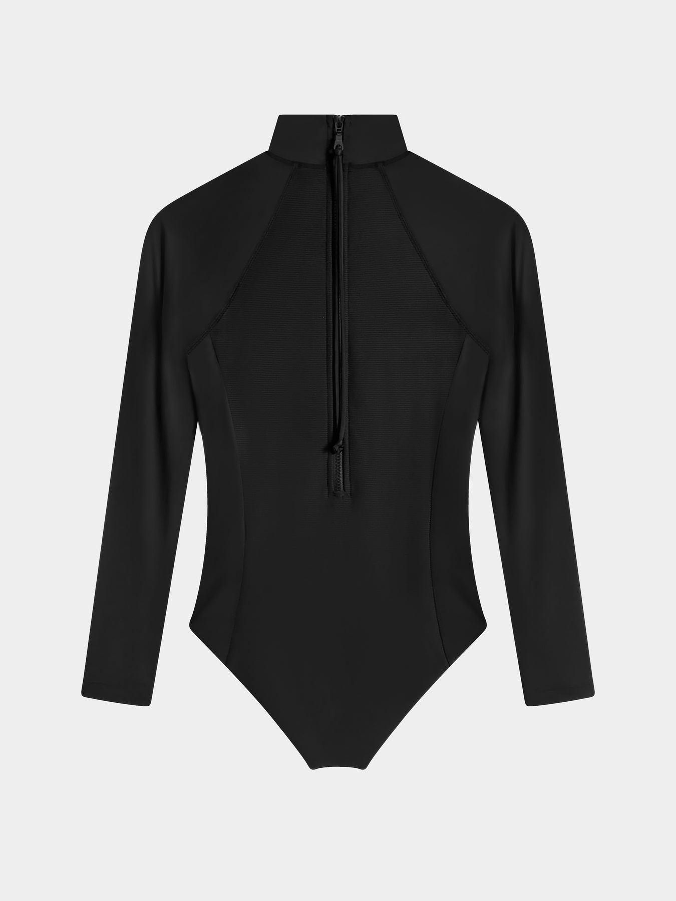 This UPF50+ full-coverage surf suit combines long sleeves and a high neckline with functional design details.